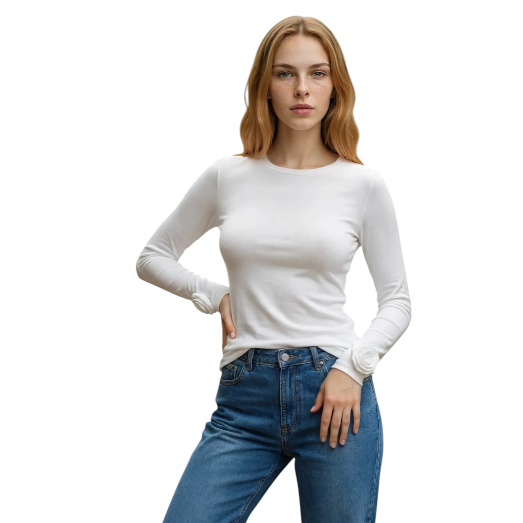 Ten longsleeve to baza z subtelnym twistem. Miękka bawełna i elastyczny materiał zapewniają komfort, a delikatne marszczenie i detal różyczki dodają charakteru. Idealny, jeśli lubisz proste rzeczy z czymś więcej.
